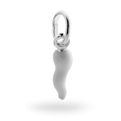 Ciondolo corno portafortuna cornetto smaltato bianco ref.13247