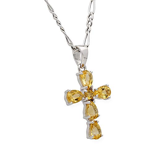Ciondolo croce in argento con quarzi citrini | Ciondolo donna argento sterling 925 | Materiali anallergici | Pendenti donna argento | Ciondoli argento donna | S&S, Quarzo