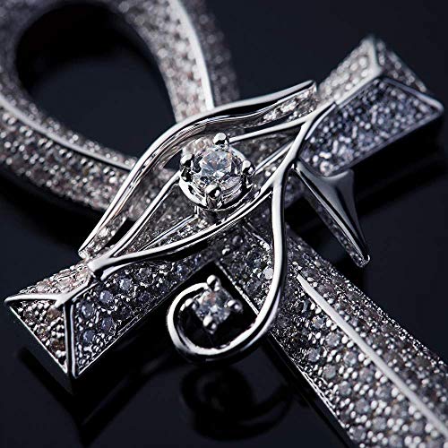 KRKC & CO - Ciondolo a Forma di Croce, con Catena a Corda da 3 mm, 55,9 cm, per Uomo, Occhio di Horus, con Pietre di Zirconia cubica 297 5A, Oro Bianco, Gioielli Hip Hop, Stile Urbano