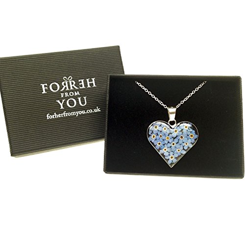 Ciondolo a forma di cuore in argento Sterling con fiore naturale realizzato con Real Dimenticarmi Nots ...