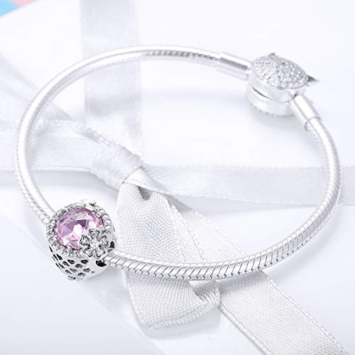 Ciondolo a forma di margherita in argento Sterling 925 con zirconia cubica rosa, per braccialetti e collane