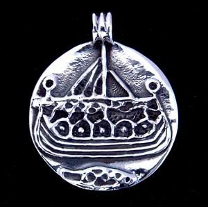 Il ciondolo a forma di nave vichinga è molto massiccio in argento Sterling. Questa è una replica di una moneta del XX secolo di Haithabu.