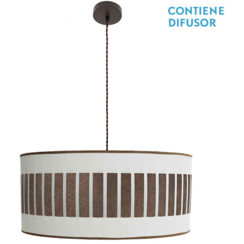 Pendente anni 80serie IVANNA di ccolore MARRONE con schermo in BIANCO/OSSIDO. Ha tre preseper E27. Lampadine non incluse. Spicca il suo originale paralume cilindrico con inserti e nastro color ruggine, risultando in un accostamento molto moderno ed elegante, ideale per arredare e illuminare ingressi, salotti, uffici e soggiorni. Molto adatto sia per decorazioni rustiche che moderne o vintage. Ha dimensioni regolabili in altezza di 46