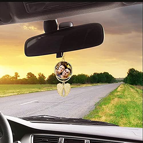2PCS Ciondolo per auto,Foto Auto Ali Ornamento specchietto retrovisore dell'auto decorazione auto fortunata interni da appendere al ciondolo Regalo (Argento&Oro)