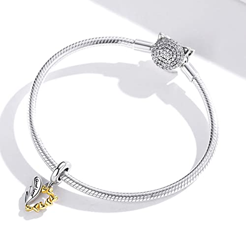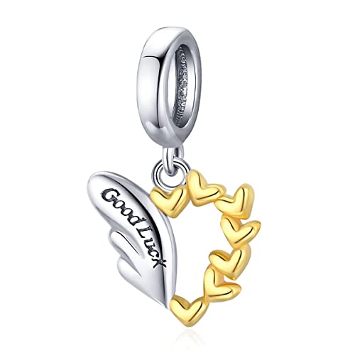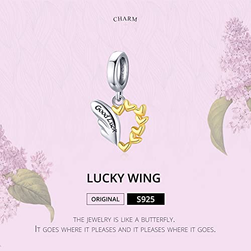 Ciondolo ala portafortuna 925 piuma in argento sterling con ciondolo a forma di cuore in oro per bracciale Pandora