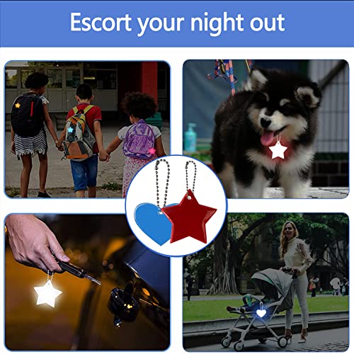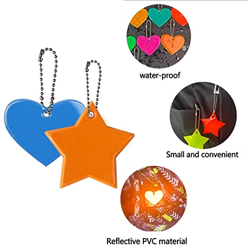 ⭐10 pendenti riflettenti di sicurezza: 5 × pendenti riflettenti di sicurezza d'amore, 5 × pendenti riflettenti di sicurezza a stella a cinque punte, dotati di catene appese. Ci sono 5 colori per le 2 forme tra cui scegliere.