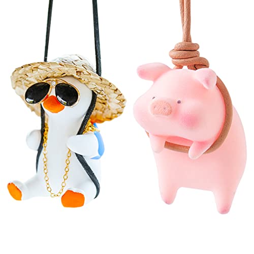 Ciondolo per Specchietto Retrovisore per Auto,Forreen 2 Pezzi Car Hanging Ornament Creativo Anatra Oscillante Cartoon Carino Piggy Ciondolo per Auto per Decorazione Interna Auto