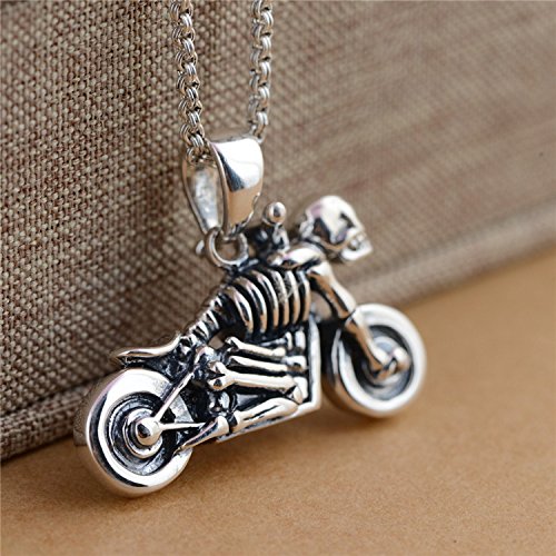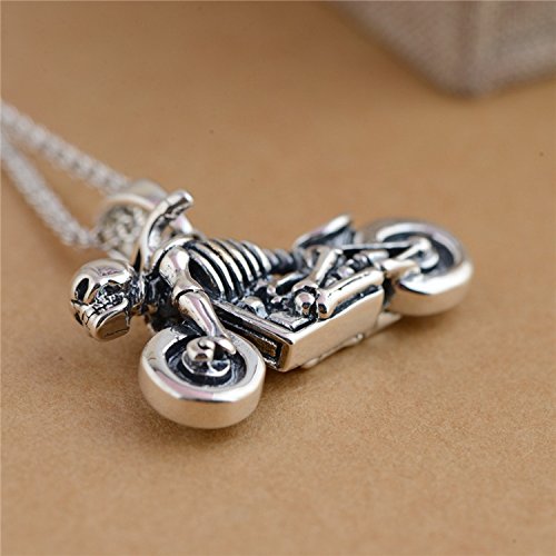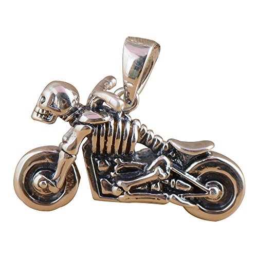 Ciondolo moto con teschio in argento sterling 925 gotico per uomo donna