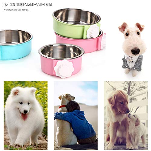 Ciotola per Animali Domestici Sospensione Caramella Ciotola per Cani in Acciaio Inossidabile Ciotola per Gatti per Animali Gabbia Fissa Ciotole Doppie Ciotola Singola Universale Blu, S Uniquelove