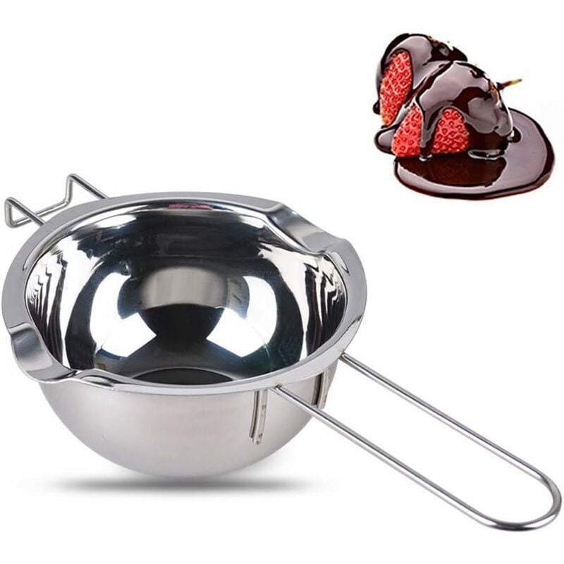 400 ml. Adatto per cuocere a vapore o sciogliere una piccola quantità di cibo. Cassa di fusione in acciaio inossidabile 304 - Realizzata in acciaio inossidabile 304, resistente alla ruggine, robusta e più sana. Facile da usare - Gancio frontale per evitare scivolamenti, doppio beccuccio su entrambi i lati, fondo piatto. Facile da pulire, sicuro per i piatti. Ampia applicazione - Può essere utilizzato per sciogliere burro, formaggio, caramello, cioccolato, caramelle, cera, latte bollente, miele caldo, ecc. Usato anche come contenitore per salsa normale o piccante. Buon kit per fare candele - A molte persone piace il fai-da-te, specialmente per fare candele, questo vaso è molto adatto per fare candele. cera. Il design del beccuccio lo rende più comodo. Descrizione del prodotto Ciotola per cioccolata La pentola a doppia caldaia funziona utilizzando il vapore dell'acqua. acqua calda nella pentola inferiore per scaldare la pentola