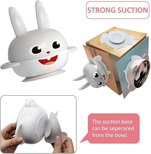 Ciotola per Bambini, Ciotola per l'alimentazione del Bambino in Acciaio Inossidabile con Cucchiaio Forchetta Ciotola per lo Svezzamento a Forma di Coniglio Carino con Coperchio Grigio Li
