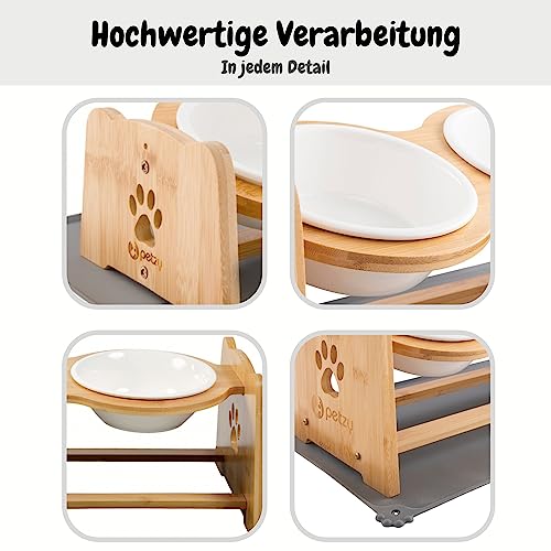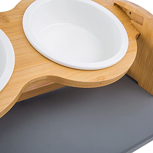 Ciotola per cani in ceramica, per gatti, regolabile in altezza, 350 ml per ciotola, ciotola per cibo per cani e gatti, ideale per cani di piccola taglia e gatti, ciotole con mangiatoia in bambù + base