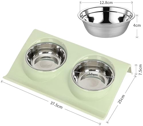 Ciotola per Cani Gatti in Acciaio Inox, Taozoey Pet Ciotole Doppia, Gatti Ciotola Portatile, Doppia Ciotola per Gatti, Gatti Ciotola, con Supporto (L, Verde)