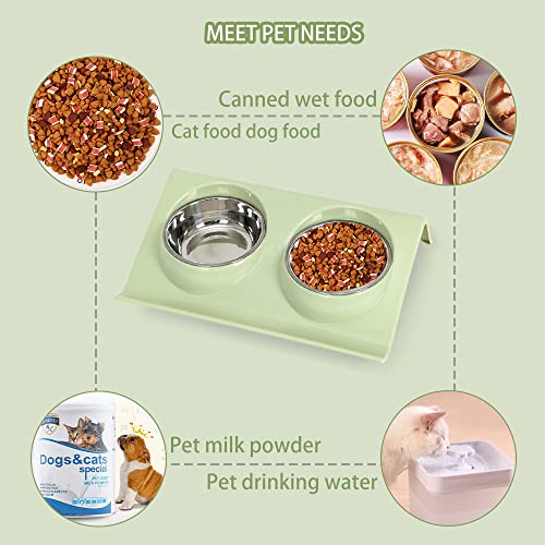 Ciotola per Cani Gatti in Acciaio Inox, XiXiRan Pet Ciotole Doppia, Gatti Ciotola Portatile, con Supporto (L, Verde)