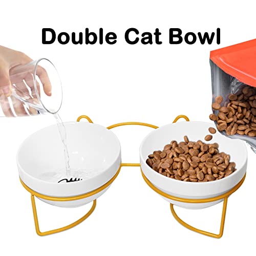 Ciotola Gatti Rialzata, 15° Inclinate Doppio Gatto Ciotola Riduce la Pressione sulle Vertebre Cervicali del Gatto, Prevenire Il Trabocco,Adatto a Gatti e