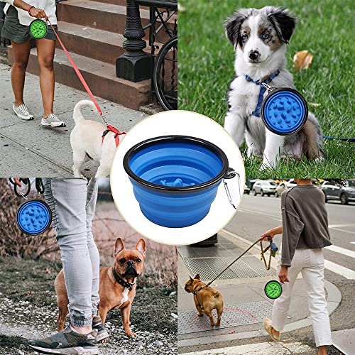 Ciotola Pieghevole per Cane, 2 Pezzi 1000ML Ciotola per Slow Food Pieghevole, Silicone Ciotola Viaggio Cani con Moschettone, Ciotola per Cani Grandi Portatile per Cane e Gatto(Blu e Verde)