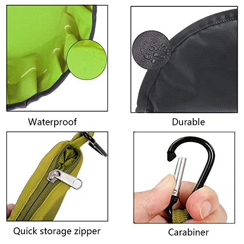 Ciotola Pieghevole per Cani, 2PZ Ciotola per Cani Ciotola da Viaggio Impermeabile, Ciotola Portatile con Cerniera e Moschettone per Cibo e Acqua per le Passeggiate e Escursione - (Grigio+Verde)