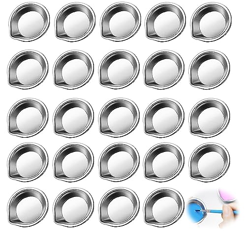 Ciotola per Pittura 24 Pezzi Rotondo Tavolozza Miscelazione Piccolo Vassoio Pittura Tavolozza in Acciaio Inox Ciotola di Pittura Tavolozze D'arte con Bocca per Miscelare Pigmenti Cosmetici Vernici