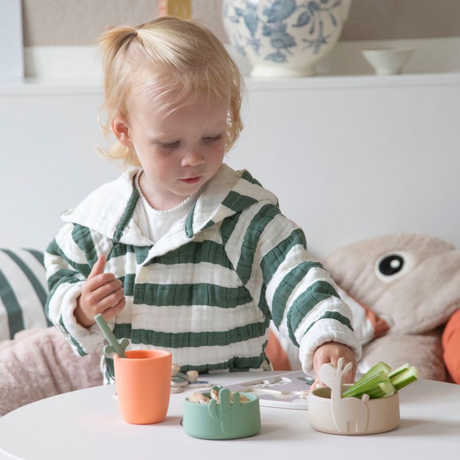 Dettagli del prodotto: Ciotola in silicone Lalee confezione da 2 pezzi. Il bordo alto e arrotondato aiuta a spingere il cibo sul cucchiaio più facilmente. Facilissima da impugnare per le mani più piccole Infrangibili, antiscivolo e adatte al microonde, al forno, al congelatore e alla lavastoviglie. Le ciotole sono perfettamente impilabili per essere conservate Materiale e dimensioni: Materiale: 100% silicone alimentare Ciotola Lalee: Ø 9,5 x H 4 cm Ciotola Cactus: Ø 8 x H 4 cm Istruzioni per la conservazione e la cura: Lavabile in lavastoviglie fino a 100°C Sicuro per il microonde Temperatura sicura: da -40°C a 230°C Incluso nella consegna: Done by Deer ™ Ciotola in silicone 2-pack Lalee rosa / corallo