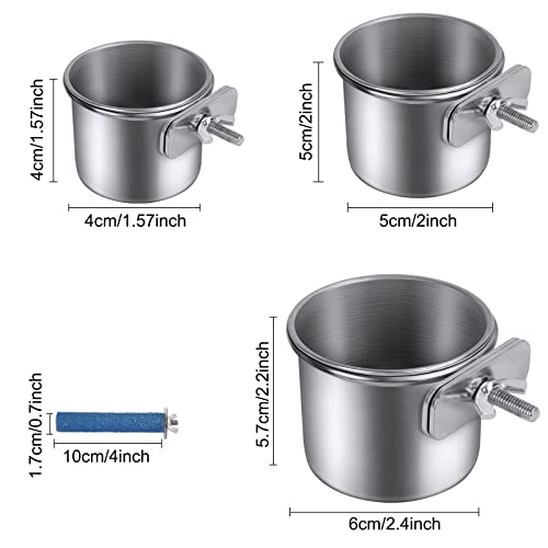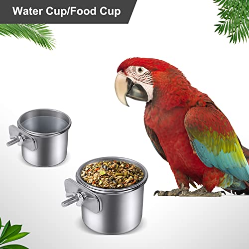 Ciotola per Uccelli in Acciaio Inox - 3 Pezzi Ciotola per Pappagallo con Supporto - Mangiatoia per Uccelli in Acciaio Inox per Cibo per Acqua per Pappagalli - con 2 Posatoi