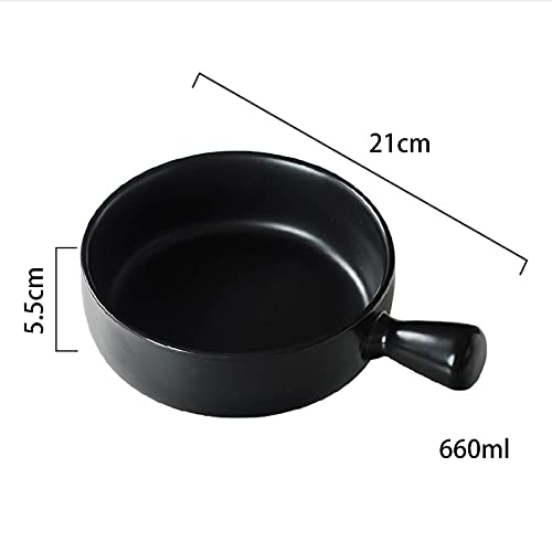 Ciotola per zuppa di cipolle, stoviglie in porcellana con manici, stoviglie in ceramica, stoviglie da forno, adatte al microonde, per rame, insalata, pasta, cereali, ciotole per cereali (nero)
