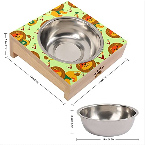 Ciotole Per Gatti Cani Rialzate Ciotole Gatto Cane Animale Del Fumetto Del Leone Acciaio Inossidabile Con Supporto In Legno Scodelle Rialzate Per Animali Domestici