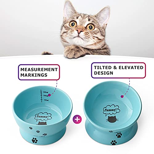 Y YHY - Ciotole per Gatti Rialzate Anti Vomito angolate per Cibo e Acqua, Ciotola per Animali Domestici in Ceramica, per Gatti Piatti, Cani di Piccola Taglia, Piedini Antiscivolo, Colore: Blu