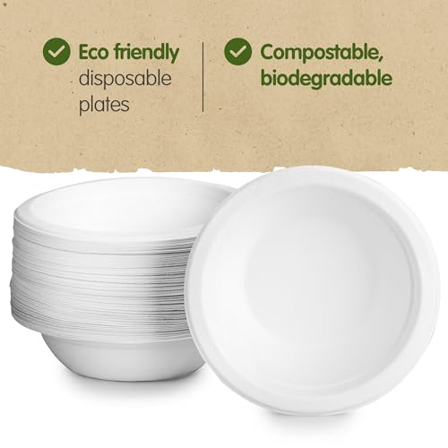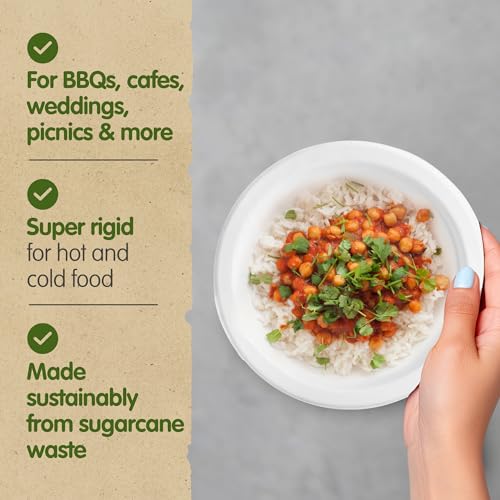 Non si strappa o non sottrarrà - È possibile utilizzare queste ciotole usa e getta in carta bagassa per servire qualsiasi tipo di cibo: pasti caldi, dolci, insalate fredde, stufati, gelati e qualsiasi cosa si possa pensare. Queste ciotole di canna da zucchero sono super rigide e forti.