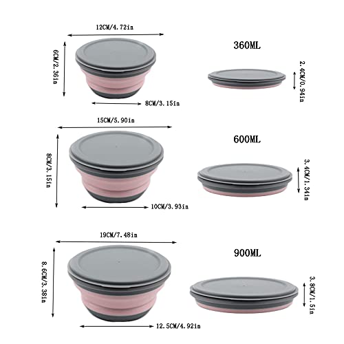 【Tre dimensioni】 Contenitore per alimenti portatile a ciotola pieghevole con coperchio Il set contiene tre diverse dimensioni di contenitori per la conservazione. Può soddisfare le tue diverse esigenze all'aperto. È molto adatto per viaggi, campeggio, escursioni, ecc.