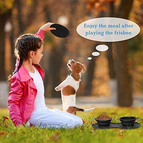 Ligo Ciotole in silicone per animali domestici cani gatti. Pieghevoli e richiudibili, portatili, espandibili,con tappetino in silicone antiperdita. Design 2 in 1. (S, NERO)
