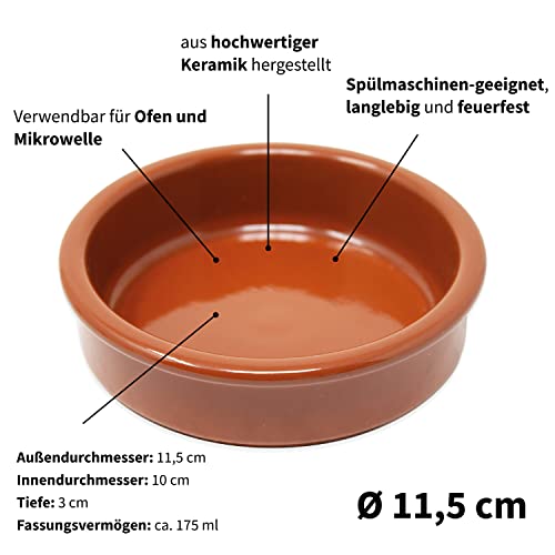 Set di 8 ciotole per tapas, Cazuela (Ø 11,5 cm) in argilla, marrone smaltato, ciotole rustiche (175 ml)