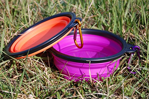 Set di ciotole da viaggio pieghevoli, da viaggio, estremamente robuste, in silicone, per cani piccoli e grandi, di alta qualità: una ciotola per l'acqua e una per il cibo (1 arancione, 1 viola)