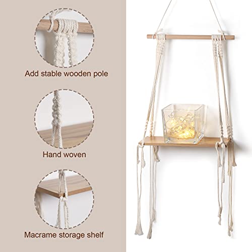 CIOUYAOS 2 pezzi macrame mensola legno, mensole da appendere bianca da muro, piccola sospese decorazioni da parete stile boho per soggiorno, cameretta, cucina (quadrato)