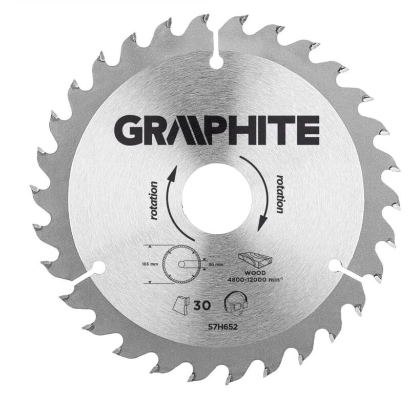 Lama per sega circolare 165per30mm 30 denti diametro: 165 x 30 mm x 30 denti lama da sega in metallo duro integrale grafite realizzata in lega di acciaio al manganese mn65 con elevata resistenza alla temperatura e alle deformazioni. i denti con punte in metallo duro sinterizzato yg6a sono progettati per il taglio di legno e materiali simili al legno, come compensato, truciolato, mdf. grazie agli anelli adattatori inclusi è possibile utilizzare la lama nella maggior parte dei modelli di sega.