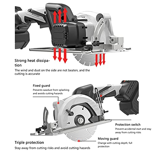 Saw Mini Sega Circolare a Batteria, Sega Circolare compatta da 5 Pollici Ideale per Tagli di Legno, Metallo Morbido, Piastrelle e plastica, Righello Scala velocità 6500 Giri/min