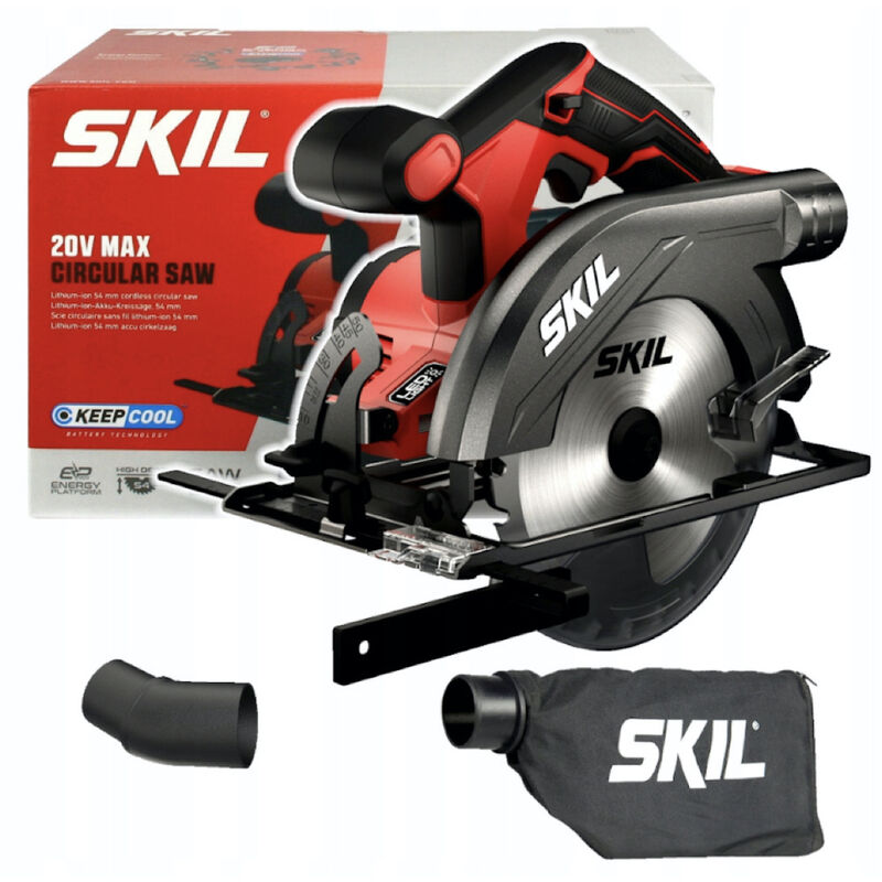 I cuscinetti a sfera protetti dalla polvere garantiscono una durata maggiore Alloggiamento per il cricchetto Tecnologia al litio: nessun effetto memoria, nessun autoscaricamento e sempre pronto all'uso Lama sul lato sinistro per massima visibilità della linea di taglio Design ergonomico superiore per garantire un controllo e una guida dell'utensile ottimali Attacco per la polvere per collegare un aspiratore o un sacchetto raccoglipolvere qualora necessario Bloccaggio per un semplice cambio della lama Parte della «Energy Platform» SKIL: IL sistema di batteria flessibile Il freno elettrico assicura il massimo comfort e consente di lavorare più rapidamente Guida della linea di taglio con visore per seguire in modo semplice e accurato la linea tracciata Massima profondità di taglio 54 mm a 90° e 44 mm a 45° La luce LED illumina la linea di taglio per una migliore visibilità del pezzo in lavorazione Potente sega circolare a batteria «20V Max» (18 V) con profondità di taglio fino a 54 mm La