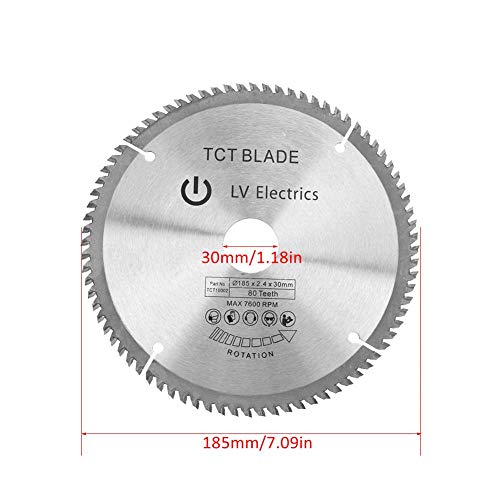 Lama per sega circolare 80 denti TCT 185mm Lama per sega circolare per taglio legno in lega dura argento con 3 pezzi Anelli di riduzione Lama per sega circolare per taglio legno