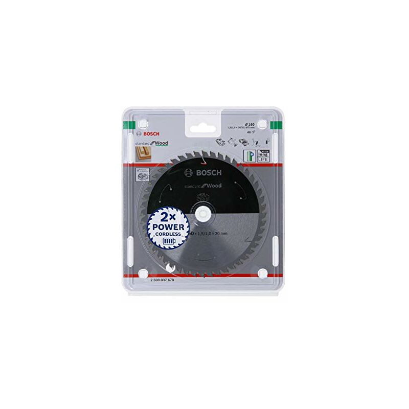 Bosch Accessories Lama Per Sega Circolare Standard For Wood (Legno, 160 x 20 x 1.5 mm, 48 Denti, Accessorio Per Sega Circolare A Batteria)