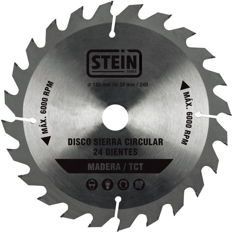 Disco STEIN in acciaio ad alta durezza. Indicato per il taglio del legno. Disco da 24 denti con finitura grossa.