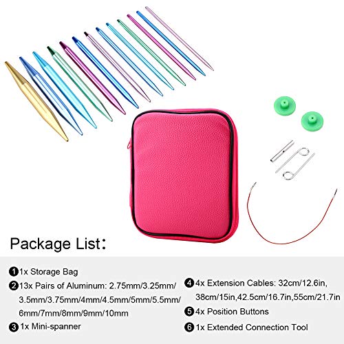 13 paia di aghi circolari intercambiabili, ferri da maglia circolari con testa di aghi 2,75 mm-10 mm
