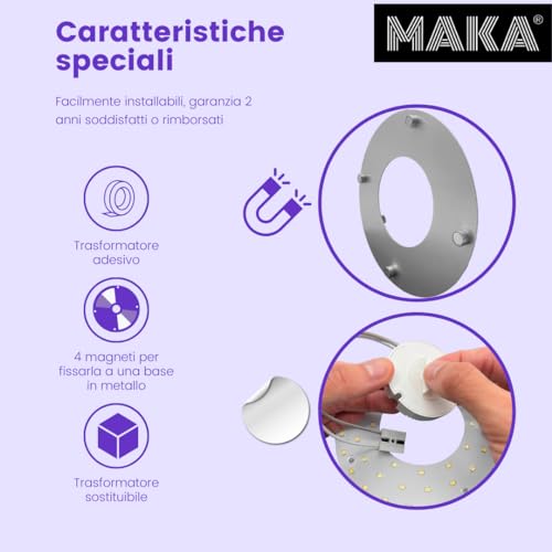 MAKA Circolina LED Ricambio Al Posto Della Lampada Neon Trasforma La Plafoniera A LED, Modulo Circolare Ultra Slim Luminoso Lampadina Circolare Led 240V (Luce fredda 6500k, 16W)
