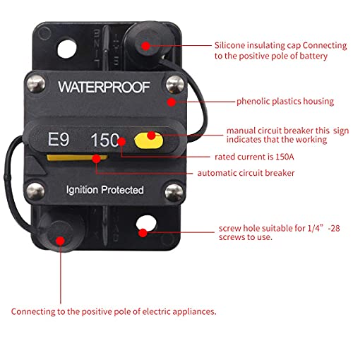 Car Circuit Breaker,MoreChioce Interruttore Automatico di Ripristino Manuale Universale Marino Impermeabile e A Prova di Polvere Fusibile Interruttore di Auto-recupero,150A