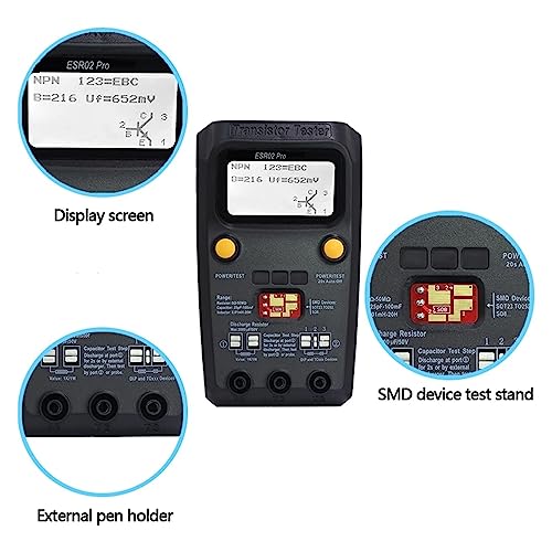 CIRONI Misuratori Tester for Transistor Digitale, componenti for multimetro Misuratore di Resistenza induttanza capacità triodo diodo (Size: ESR02PRO-Test clip-01)