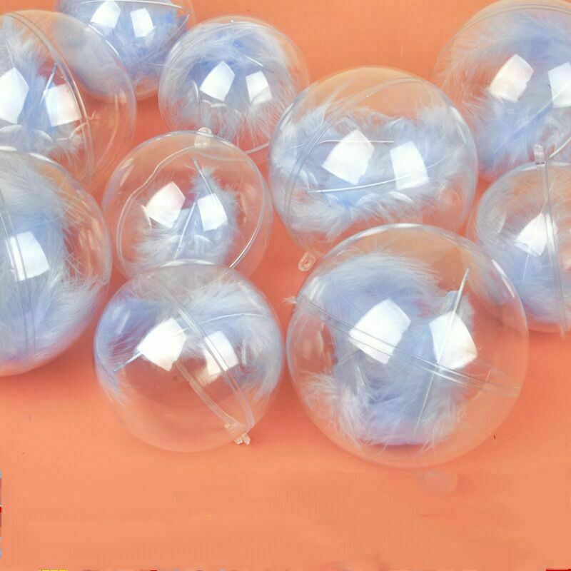 Nome: Sfera trasparente decorativa Materiale: plastica PS Colore: trasparente (la cavità può contenere oggetti, confezionata in due metà) Peso: 5g--235g Caratteristiche: ampia gamma di applicazioni, decorazioni festive 5 cm 5 filati trasparenti 1 rotolo 6 cm10 ganci adesivi a soffitto 30 pezzi 8cm10pz10cm5 piume100pz [30 palline + piume azzurre] + gancio/filo