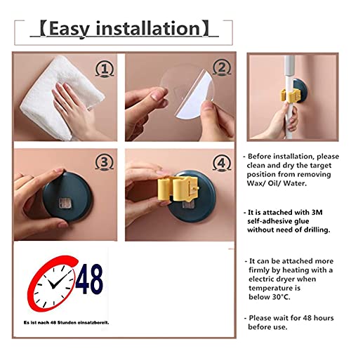 Fessura di serraggio in gomma:C'è un tappetino antiscivolo nel mezzo del porta scopa. Facile da organizzare con una robusta clip a molla. Tiene fermamente gli oggetti.Rilascio facile sollevando la maniglia. Può appendere la maniglia del diametro 1,5 cm2,8 cm.