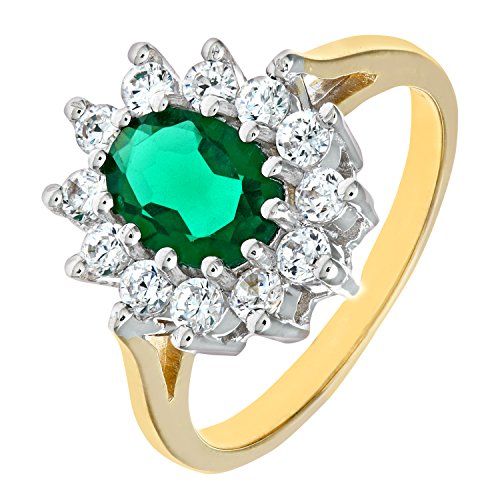 Citerna Anello da Donna in Oro Giallo/Bianco 9K con Zirconia Cubica e Smeraldo