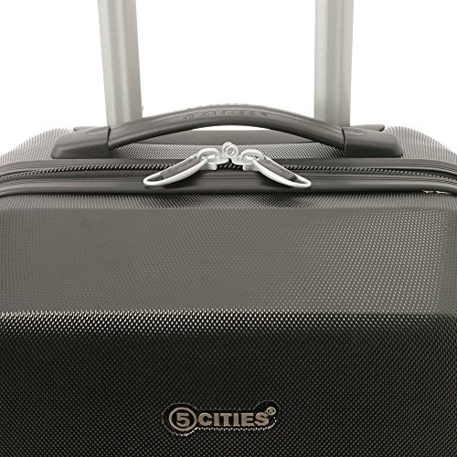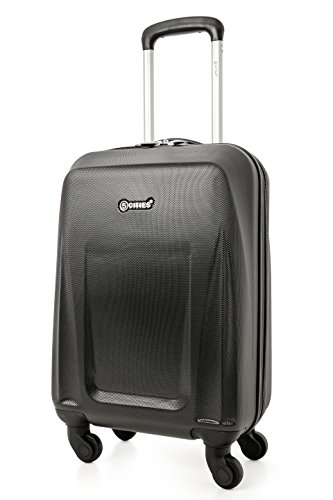 5 Cities Leggero ABS rigido Shell Carry On cabina Valigia per i bagagli a mano con 4 ruote, approvato per Ryanair, easyJet, British Airways, Virgin Atlantic e altro (2 x Nero)