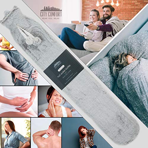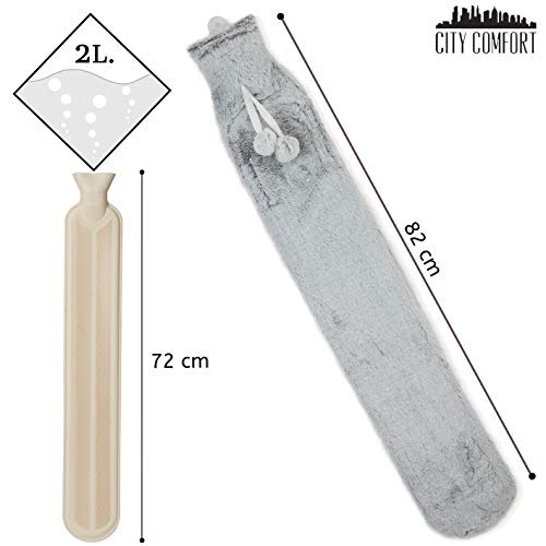 CityComfort Borsa Dell Acqua Calda Stampa Leopardata Super Lunga 72 cm | Borsa Acqua Calda Morbida con Coperchio in Maglia Grigio o Leopardo, Cuscino Termico In Gomma Naturale 2l (Grigio Chiaro)