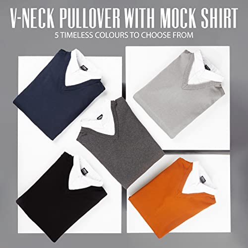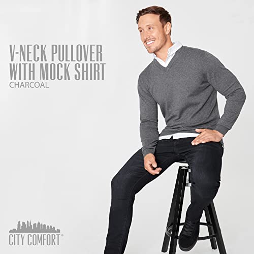 CityComfort Maglione Uomo con Scollo a V e Collo con Camicia Finta (XXL, Carbone Scollo a V)