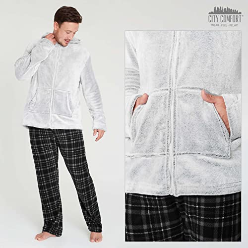 CityComfort Pigiama Uomo, Pigiama Uomo Invernale in Pile Slim Fit M-2XL (Grigio, L)